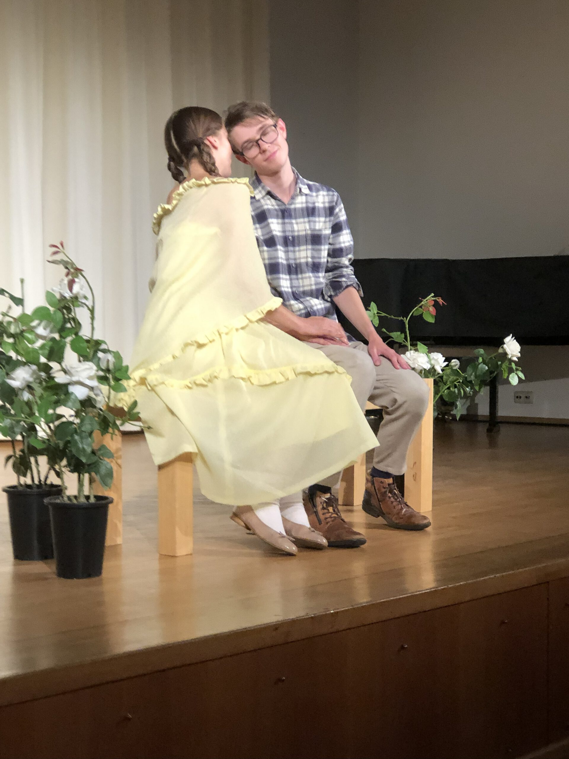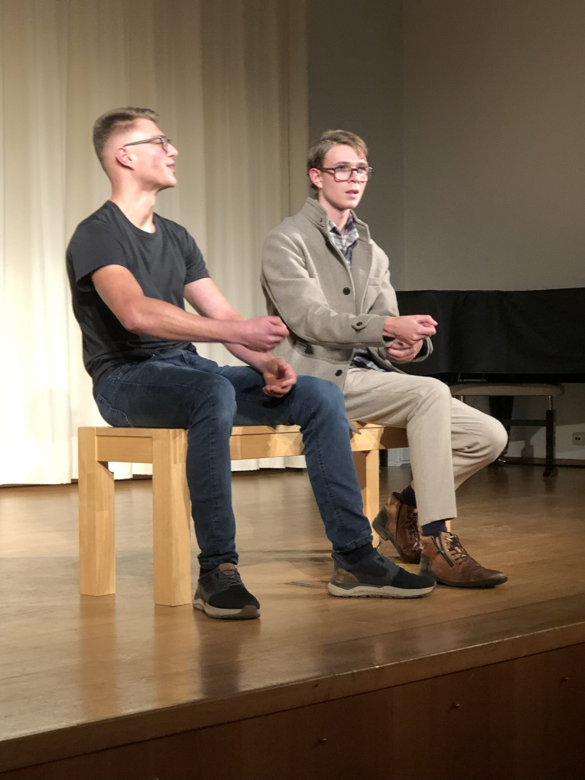 Mit großem Applaus bedachte das Publikum das kleine Ensemble samt Spielleiterin und zeigte sich beeindruckt von der Eindringlichkeit, mit der dieser so ernste und schwierige Stoff auf die Bühne gebracht worden war. Dies galt auch für die Nebenfiguren. Maya Schießl stellte die eher um Harmonie und Optimismus in der Familie bemühte Inge Scholl überzeugend dar. Auch Elektra Moos (Hans‘ Freundin Lisa Remppis + Mutter Scholl), Jana Gaschler (Hans‘ Freundin Rose Nägele + Verhörperson) und Nico Saller (Alexander Schmorell + Hausmeister Jakob Schmid) boten ihre verschiedenen und mitunter sehr gegensätzlichen Rollen beeindruckend dar. Abschließend richteten Katharina Kroiss und Quirin Hofbrückl im Namen der Mitwirkenden einige abschließende Worte ans Publikum, wobei sie einerseits ihre Dankbarkeit ausdrückten, „ihr“ Stück, das sie selbst ausgewählt und mitgestaltet hatten, in so würdigem Ambiente wie dem Kapuzinerstadl noch ein letztes Mal aufführen zu können, andererseits aber auch nochmals die thematische Bedeutung gerade für aktuelle politische Entwicklungen betonten. Sie wiesen auch auf die heutige Stiftung der „Weißen Rose“ hin. Und so blieb am Ende der Eindruck, dass man sich viel mehr dessen bewusst werden sollte, dass die Gedanken in jeglicher Hinsicht frei sind, was gerade in den vielen reflektierenden und angeregten Gesprächen der Beteiligten mit den Zuschauern im Anschluss an die Aufführung deutlich wurde.