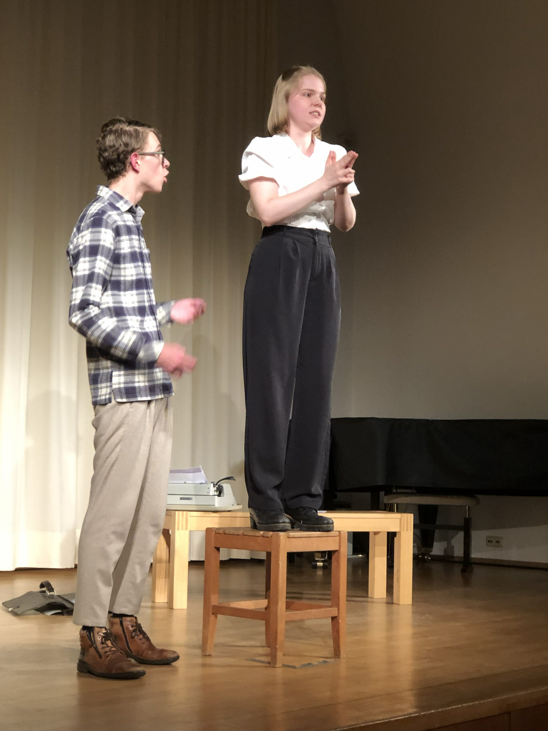 „Nichts ist schöner als die Freiheit des Gedankens“ – dieser Satz von Alexander Schmorell, Teil der Widerstandsgruppe „Weiße Rose“ gegen das NS-Regime im Zweiten Weltkrieg, lässt die schweren inneren Kämpfe nur erahnen, die ein Mensch in sich trägt, wenn diese Freiheit der Gedanken sich nicht vereinbaren lässt mit den äußeren Zwängen, die ein „freies“ Handeln nur sehr schwer möglich machen. Mit diesem Widerspruch befasst sich auch das Theaterstück „Wie sie den Himmel verdunkeln“ von Jörg Neugebauer und Elvira Lauscher, das das Umfeld und die Hauptfiguren der „Weißen Rose“ näher beleuchtet. Das Oberstufentheater des Robert-Koch-Gymnasiums unter der Regie von OStRin Susanne Loring hat sich, unterstützt vom P-Seminar „Rund um Theater und Film“ und der Technikgruppe des Gymnasiums, dieses ernsten, aber nichtsdestoweniger bis heute relevanten Stoffes angenommen. Nach der Premiere im letzten Jahr an der Schule erfolgte nun eine weitere Aufführung im Kapuzinerstadl in Deggendorf, zu der Ursula Keßler von der Initiative „Demokratie leben in Deggendorf“ und Susanne Loring die interessierten Zuschauer herzlich begrüßten. Veranstaltet wurde der Theaterabend neben dem Robert-Koch-Gymnasium vom Kinderschutzbund Deggendorf-Plattling e.V. im Rahmen der Veranstaltungsreihe der „Wochen der Begegnung“ der Stadt Deggendorf.