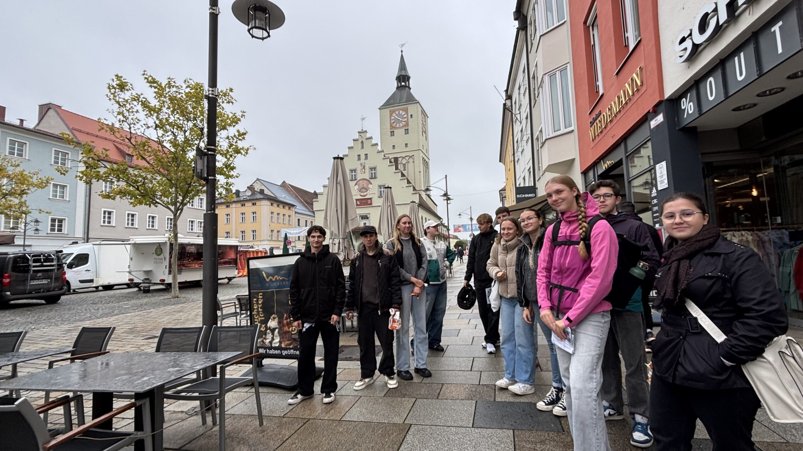 Neben der Theorie über Stadtmodelle, Siedlungsentwicklung und Nachhaltigkeitsplanungen im Stadtbild soll in der Oberstufe auch die Erfahrbarmachung in der Praxis erfolgen. Hierfür stellte der Geographie-Oberstufenkurs unter der Leitung von Frau Bahle die Stadt Deggendorf auf den Prüfstand. Den grauen Wetterbedingungen zum Trotz begann die Exkursion mit der geschichtlichen Stadtentwicklung Deggendorfs.