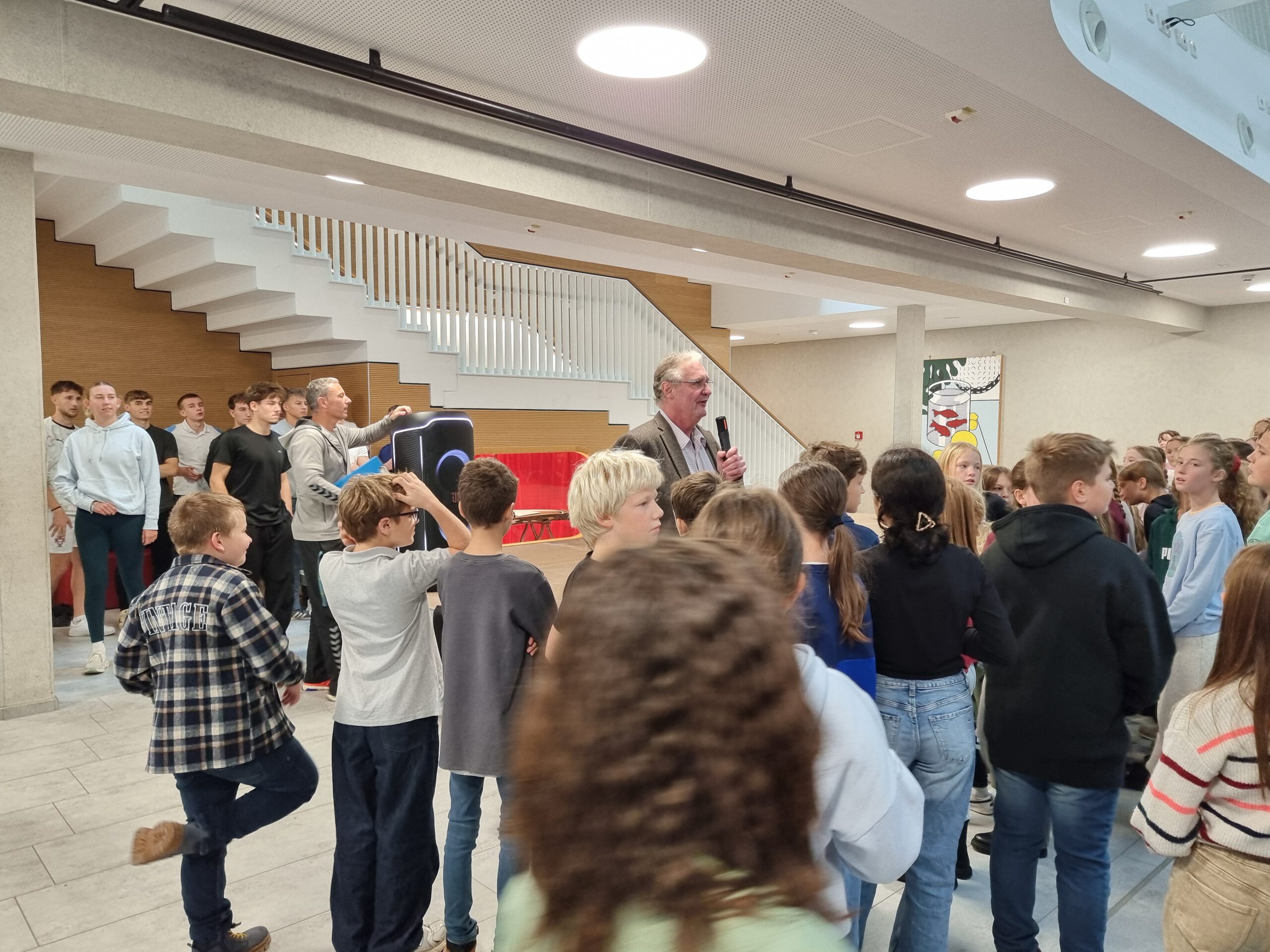 Einen besonderen Vormittag erlebten die Schülerinnen und Schüler des Robert-Koch-Gymnasiums am 13. Oktober, dem Tag der Gesundheit und Nachhaltigkeit. Während die Kultusministerin Anna Stolz und Bayerns Gesundheitsministerin Judith Gerlach am ersten Bayerischen Präventionstag an einem Gymnasium in Schweinfurt für einen gesunden Lebensstil geworben haben, gab es am ROKO ebenfalls ein sichtbares Zeichen mit Aktionen zur Gesundheitsförderung. Der Schulleiter Heribert Strunz eröffnete den Aktionstag unter dem Motto „BalanceAkt“ und betonte die Relevanz der physischen und psychischen Gesundheit an der Schule.