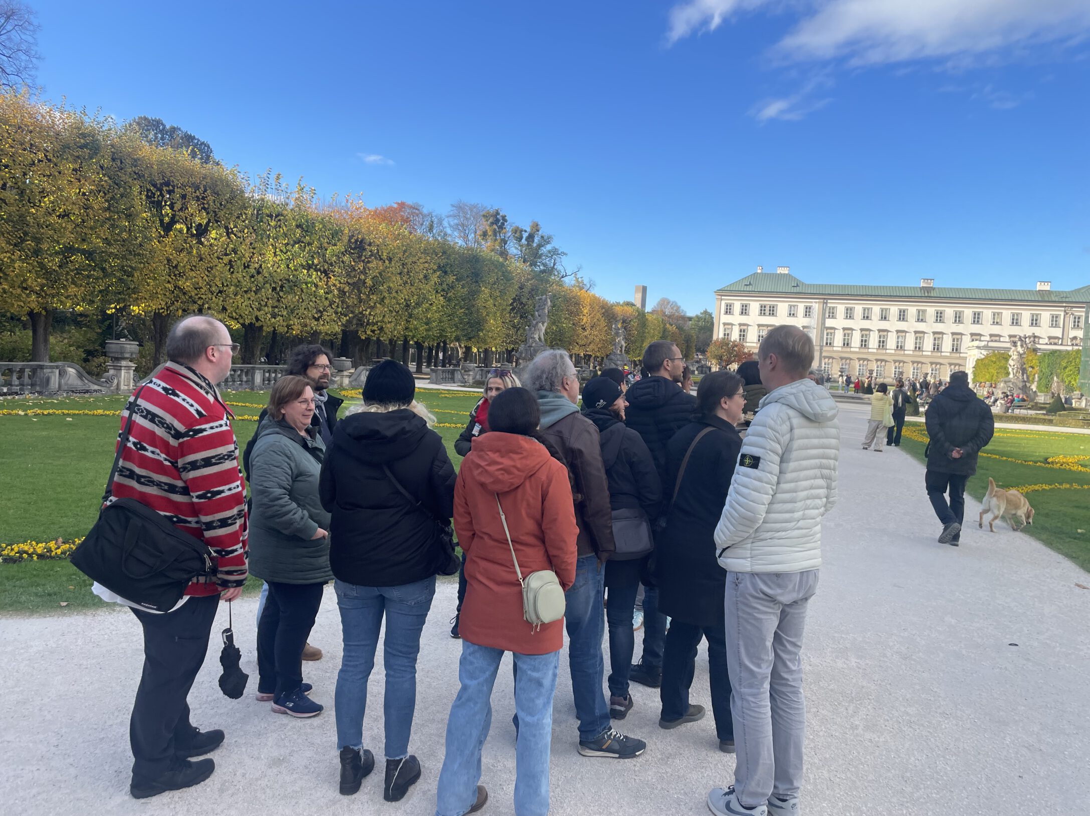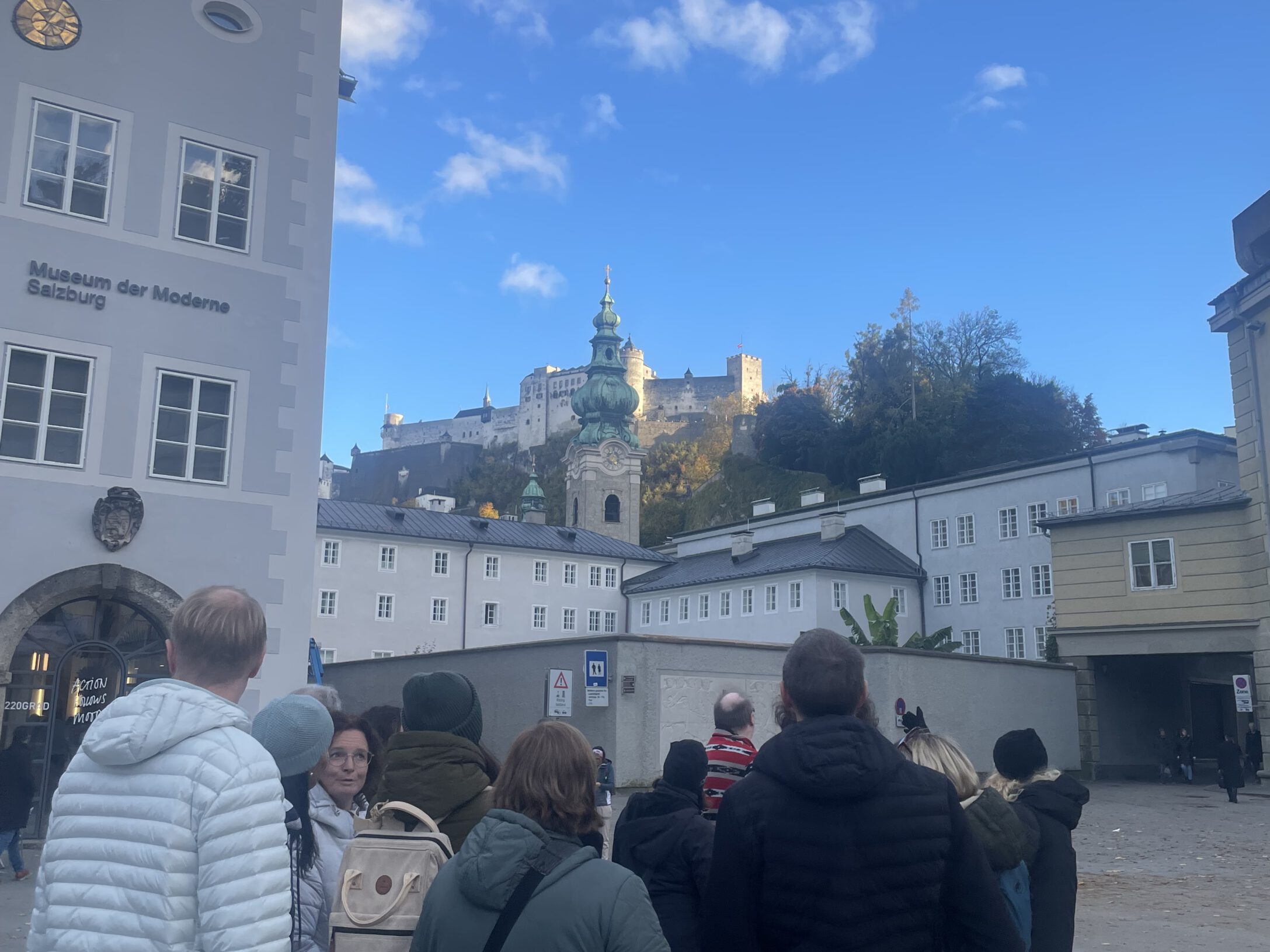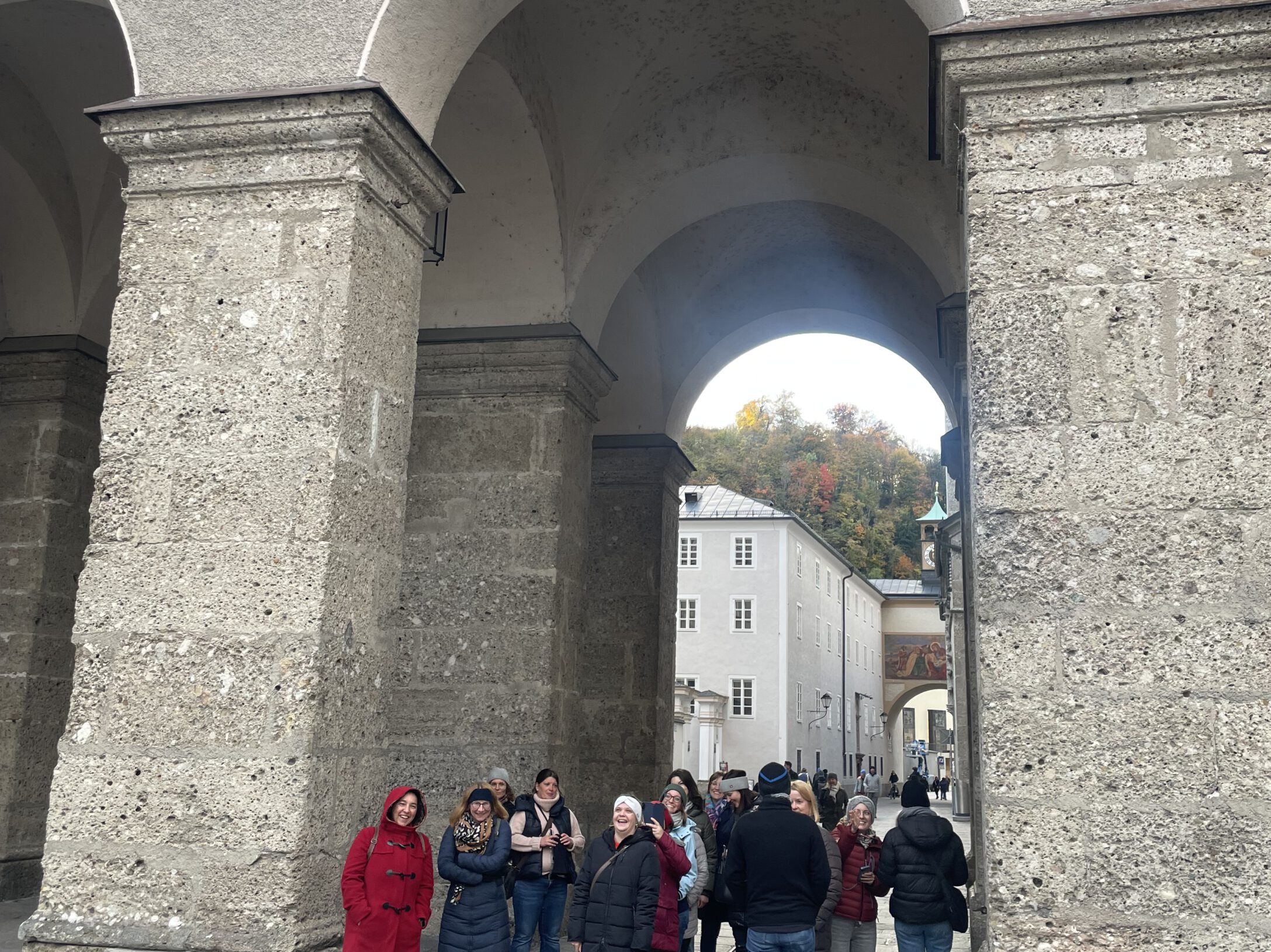 Nach einem gemeinsamen Mittagessen in der Kantine machen sich die Schülerinnen und Schüler zusammen mit den tschechischen Lehrkräften sowie OStRin Sarah Miedl und StRin Stefanie Finkl auf zu einer Stadtführung durch Deggendorf. Bei herbstlichem Wetter erkundet die Gruppe geschichtsträchtige Orte und tauscht sich rege über Gemeinsamkeiten und Unterschiede aus.