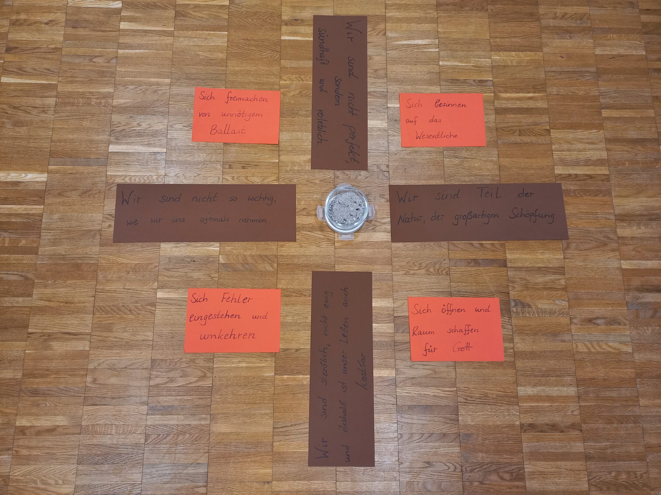 Jeden Dienstag von 7.45-7.55 Uhr laden die Fachschaften Religion zu einem Morgenimpuls in der Fastenzeit ein. Mit einer kurzen Andacht oder kleinen Geschichte starten die Schüler so nun erfrischt in den Tag: Beim ersten Morgenimpuls reflektierten sie über die Bedeutung des Aschekreuzes. Außerdem überlegten sie, was in ihrem Leben „verstaubt“ ist und in der Fastenzeit erneuert werden darf.