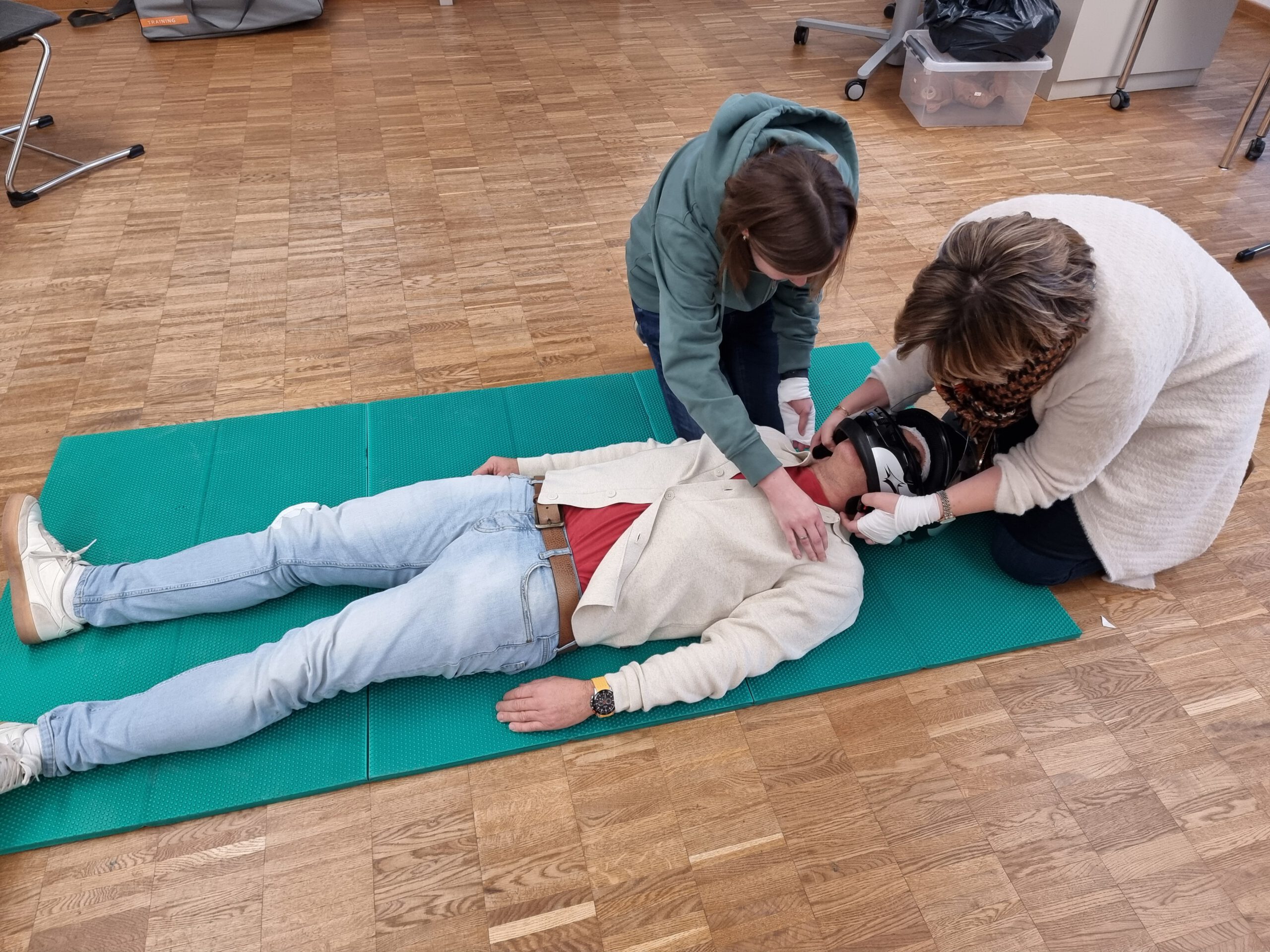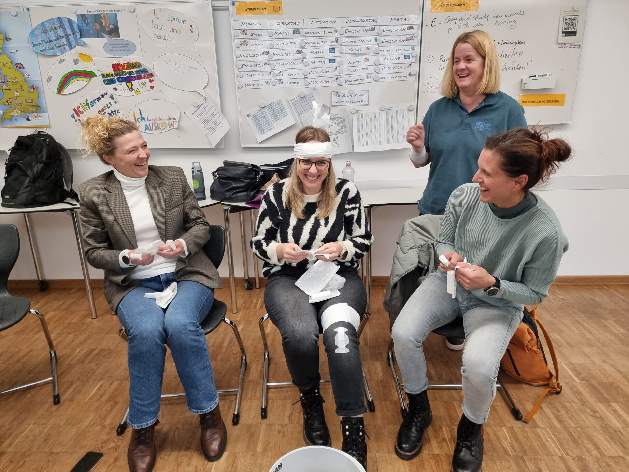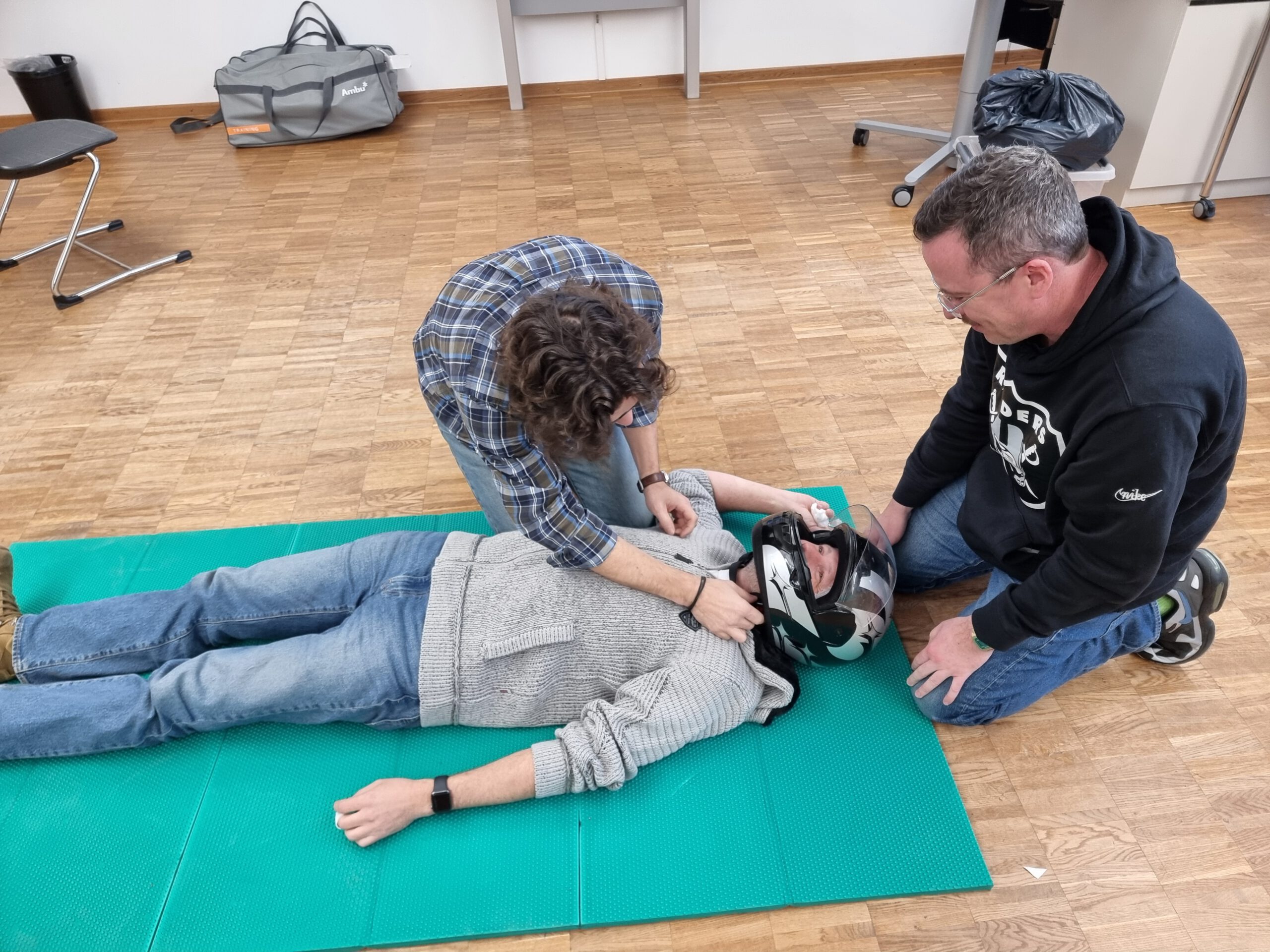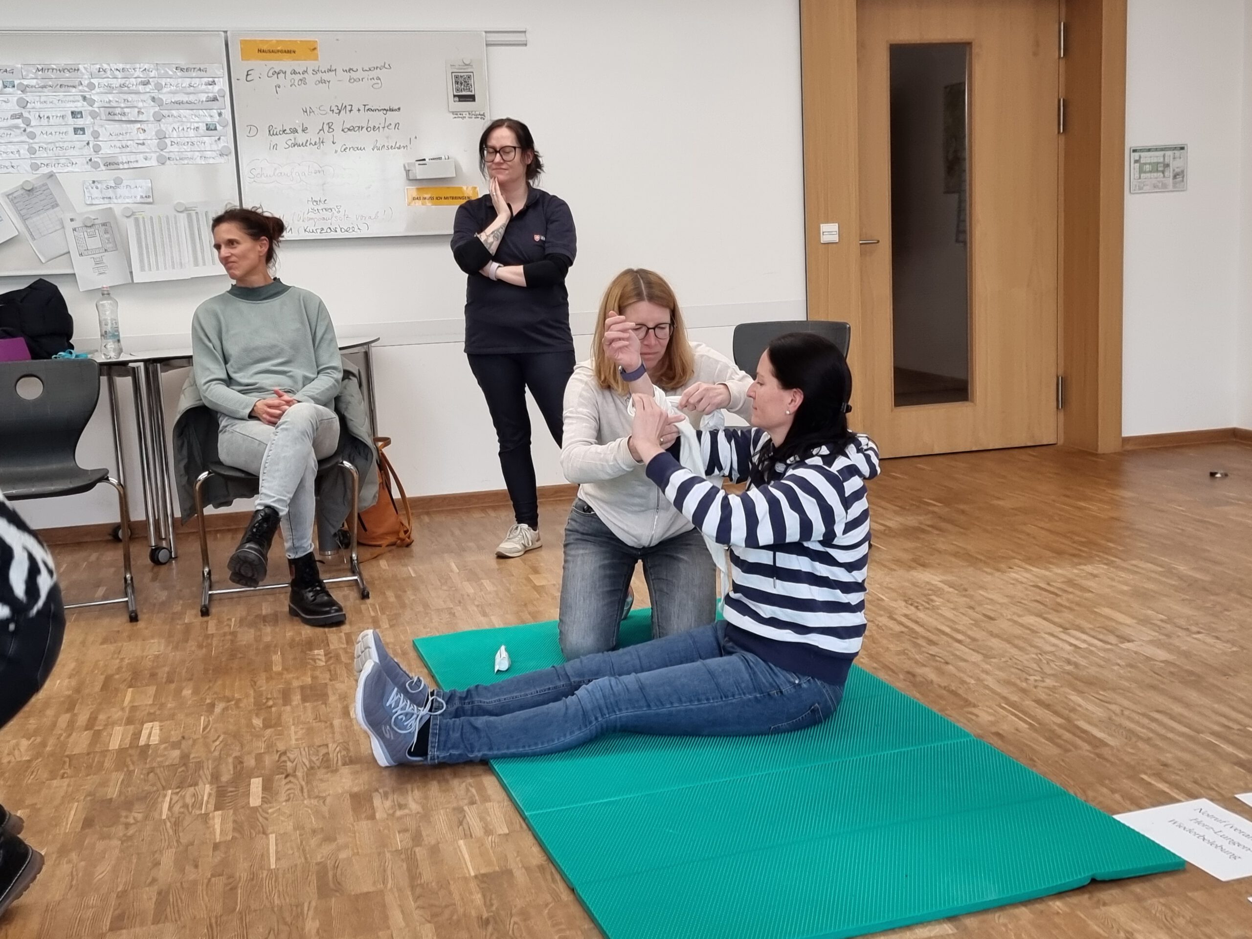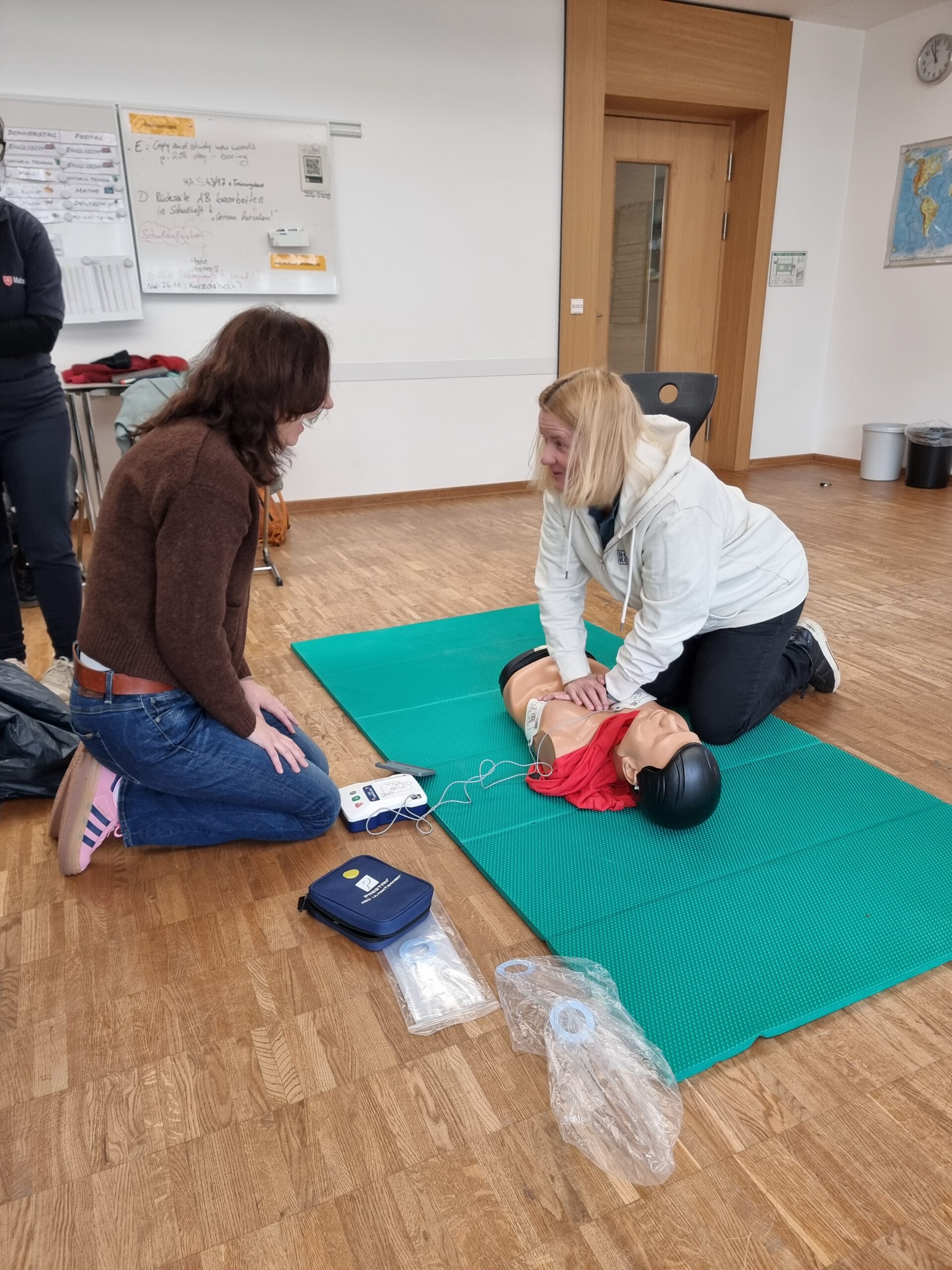 Also fanden sich am unterrichtsfreien Buß- und Bettag, den 19.11.2025, einige Lehrerinnen und Lehrer sowie Mitarbeiterinnen des Schulsekretariats am Robert-Koch-Gymnasium zusammen, um sich in der Ersten Hilfe fortzubilden bzw. um darin wieder mehr Sicherheit zu gewinnen. Die Referentin Stefanie Gloth von den Maltesern in Deggendorf führte uns in einer fachlich fundierten und angenehm kompetenten Vorgehensweise an die verschiedenen Aufgabenbereiche der Ersthelfertätigkeiten wie die Durchführung von Maßnahmen zur Wiederbelebung, den Selbstschutz und die weitere Versorgung von in Not geratenen Personen wieder ein.