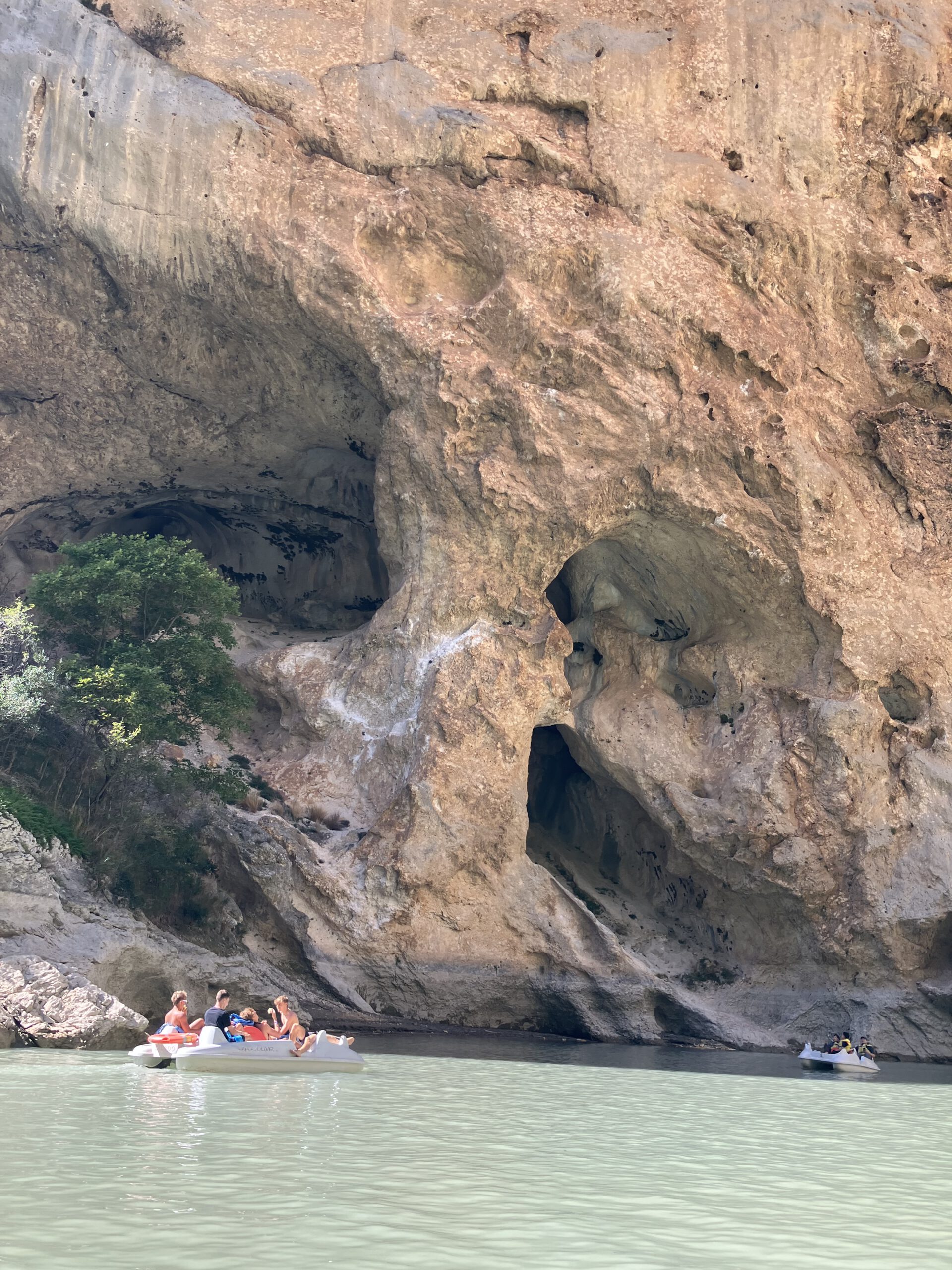 Der Mittwoch führte uns ins Landesinnere, wo wir mit Tretbooten vom Lac de Sainte Croix aus 2 km in die sagenhafte Verdonschlucht, den Grand Canyon Europas, hineinfahren und die überwältigende Landschaft bewundern konnten. Dabei war die Herangehensweise sehr vielfältig: so manches Tretboot war eher „chillig“ unterwegs, während andere den sportlichen Wettkampf mit den Lehrerkajaks suchten und… verloren! 😉 Der Ausflug endete mit einem Mittagspicknick und einem erfrischenden Bad im Lac de Sainte Croix.