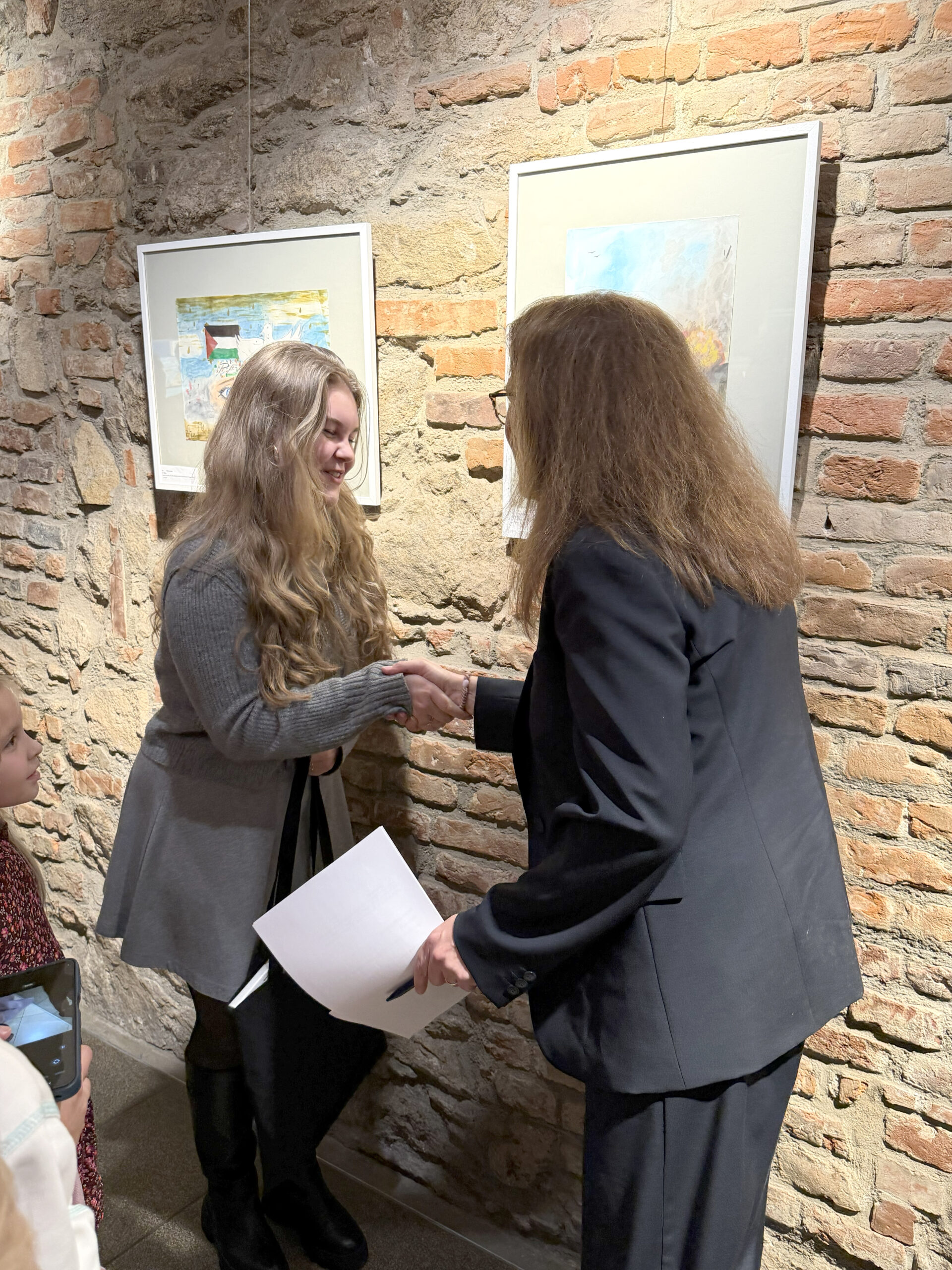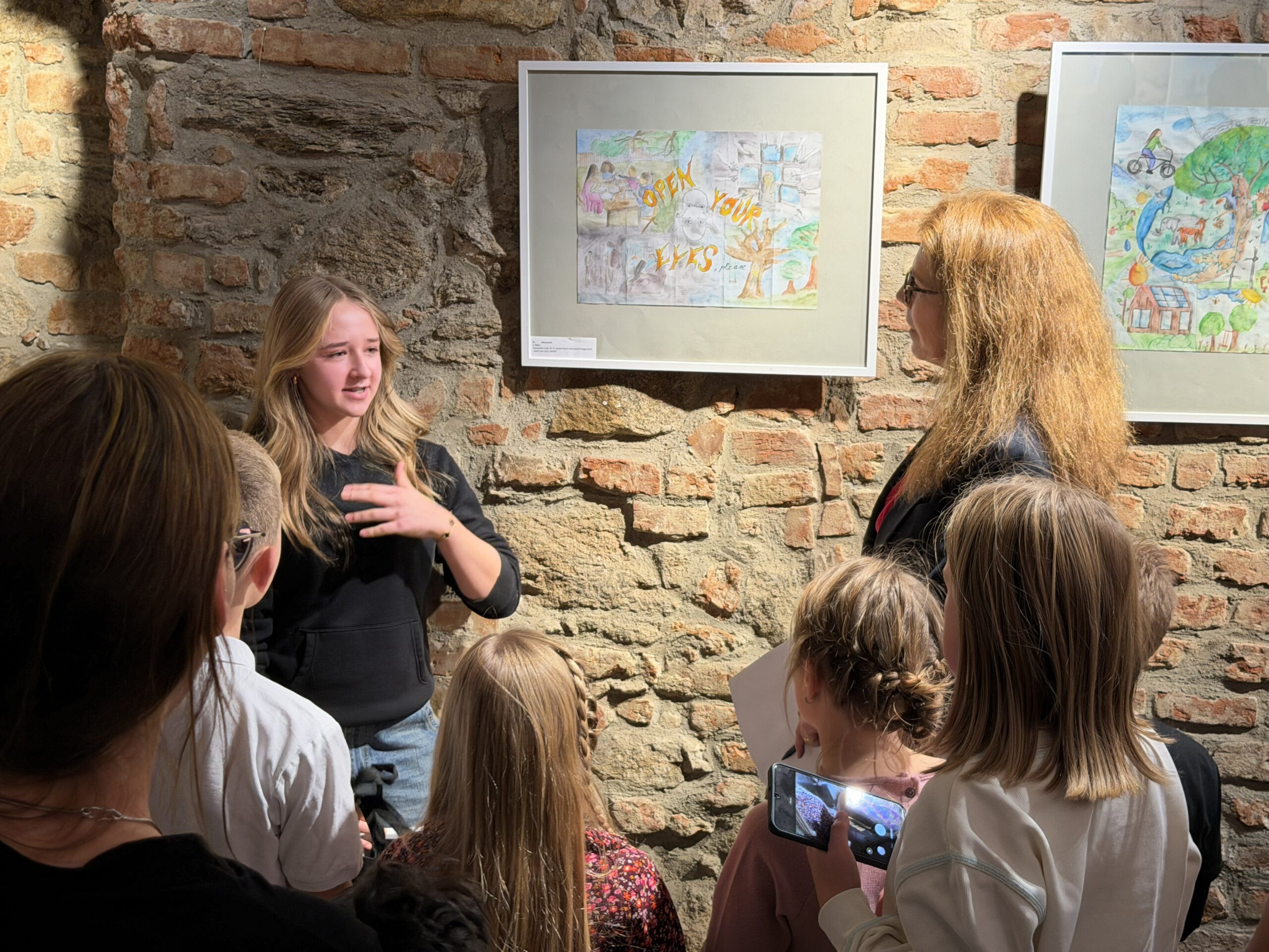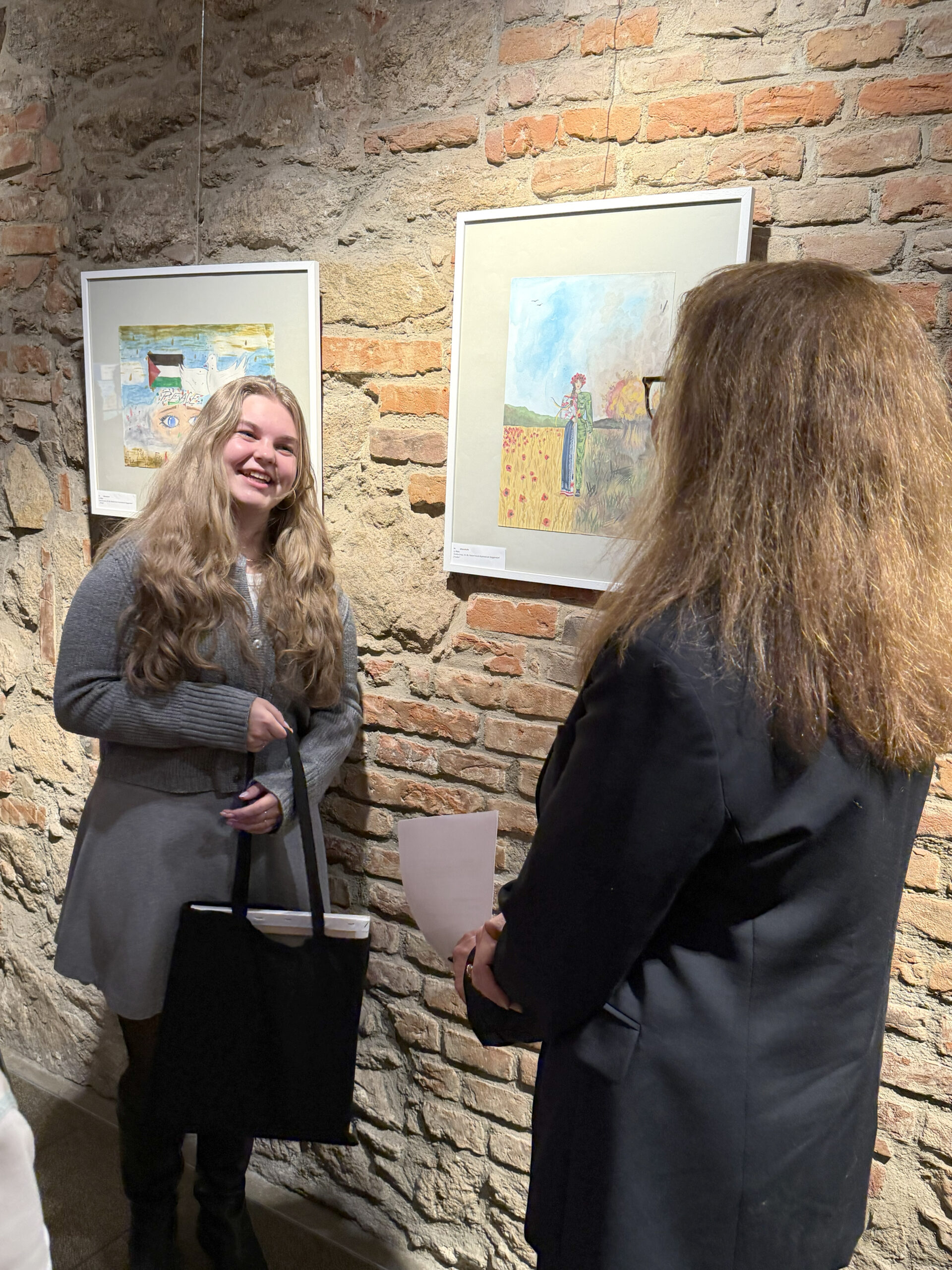 Ein Höhepunkt des Abends war die Prämierung der Preisträger: Vier Arbeiten wurden von der Jury ausgezeichnet – ein großartiger Erfolg für unsere jungen Künstlerinnen und Künstler! Als besondere Anerkennung erhielten die Preisträgerinnen ihre Bilder hochwertig gerahmt sowie einen Stoffbeutel mit Kunstmaterialien, um ihre Kreativität weiter zu fördern.