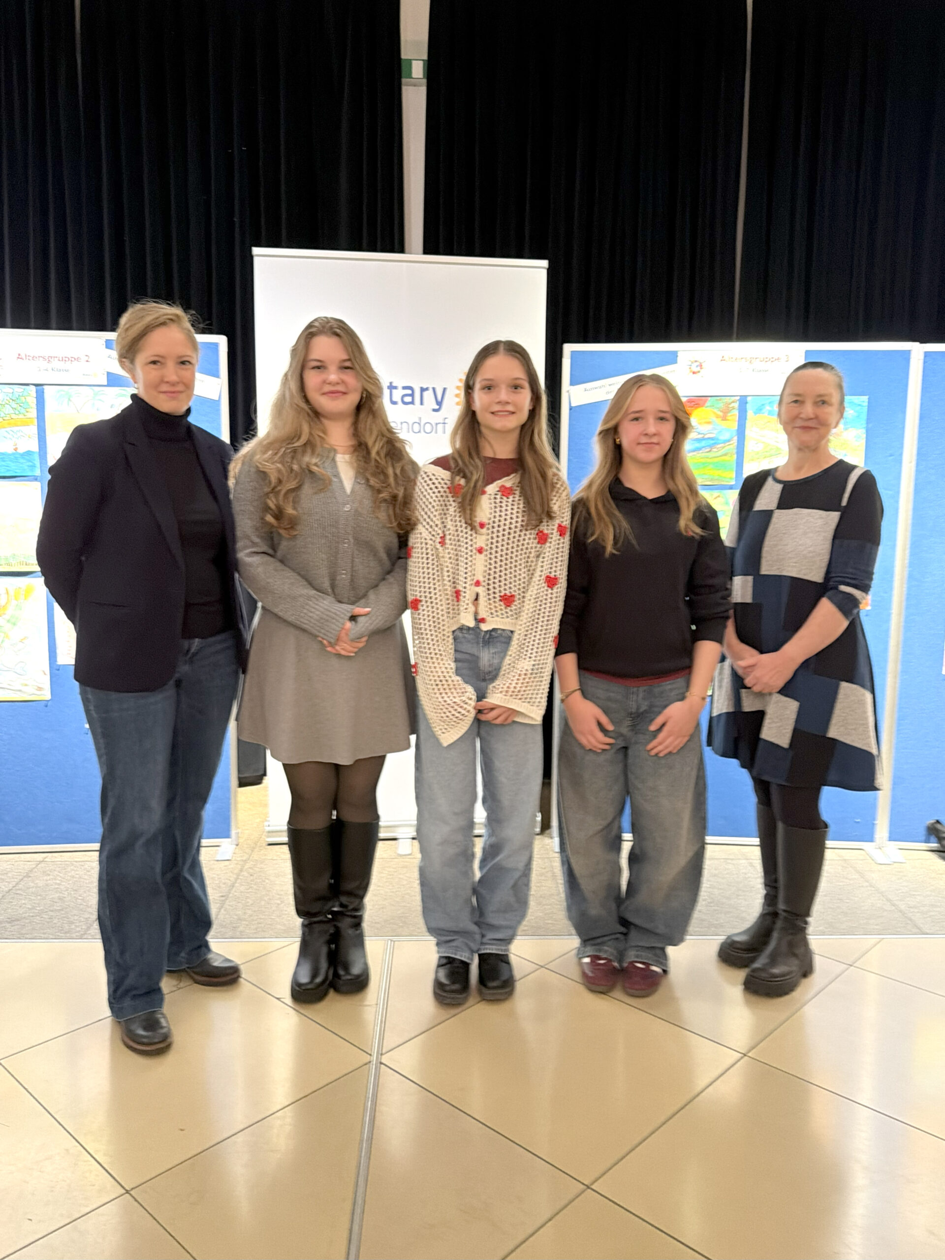 Am 21.11.2025 fand im Kapuzinerstadl Deggendorf die feierliche Vernissage und Preisverleihung des Rotary-Kunstwettbewerbs statt. Unter dem Motto „Gemeinsam für eine bessere Zukunft – Deine Kunst für die UN-Nachhaltigkeitsziele“ hatten neun unserer Schülerinnen und Schüler die besondere Gelegenheit, ihre Werke in diesem inspirierenden Rahmen auszustellen. Die Themen des Wettbewerbs nach Altersstufen gestaffelt, waren dabei anspruchsvoll und hochaktuell: