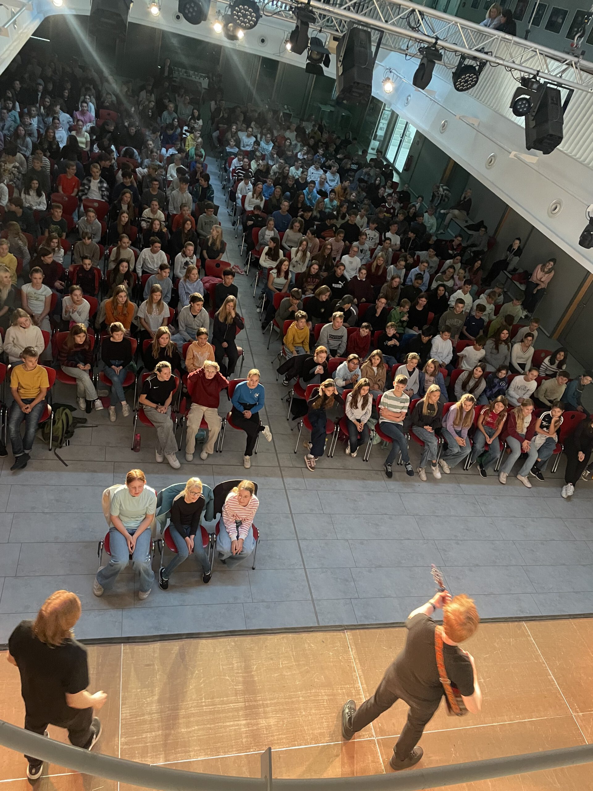 Am späteren Vormittag kamen dann die 6. bis 8. Klassen in den Genuss von Classic Celtic. Mitreißende Lieder, witzige Dialoge und viele Mitmachmomente nahmen die Jugendlichen mit auf eine musikalische und humorvolle Entdeckungstour durch Irlands Kultur und Geschichte. Das junge Publikum sang, klatschte, lachte und machte die Vorstellung so zu einem fröhlichen Gemeinschaftserlebnis.